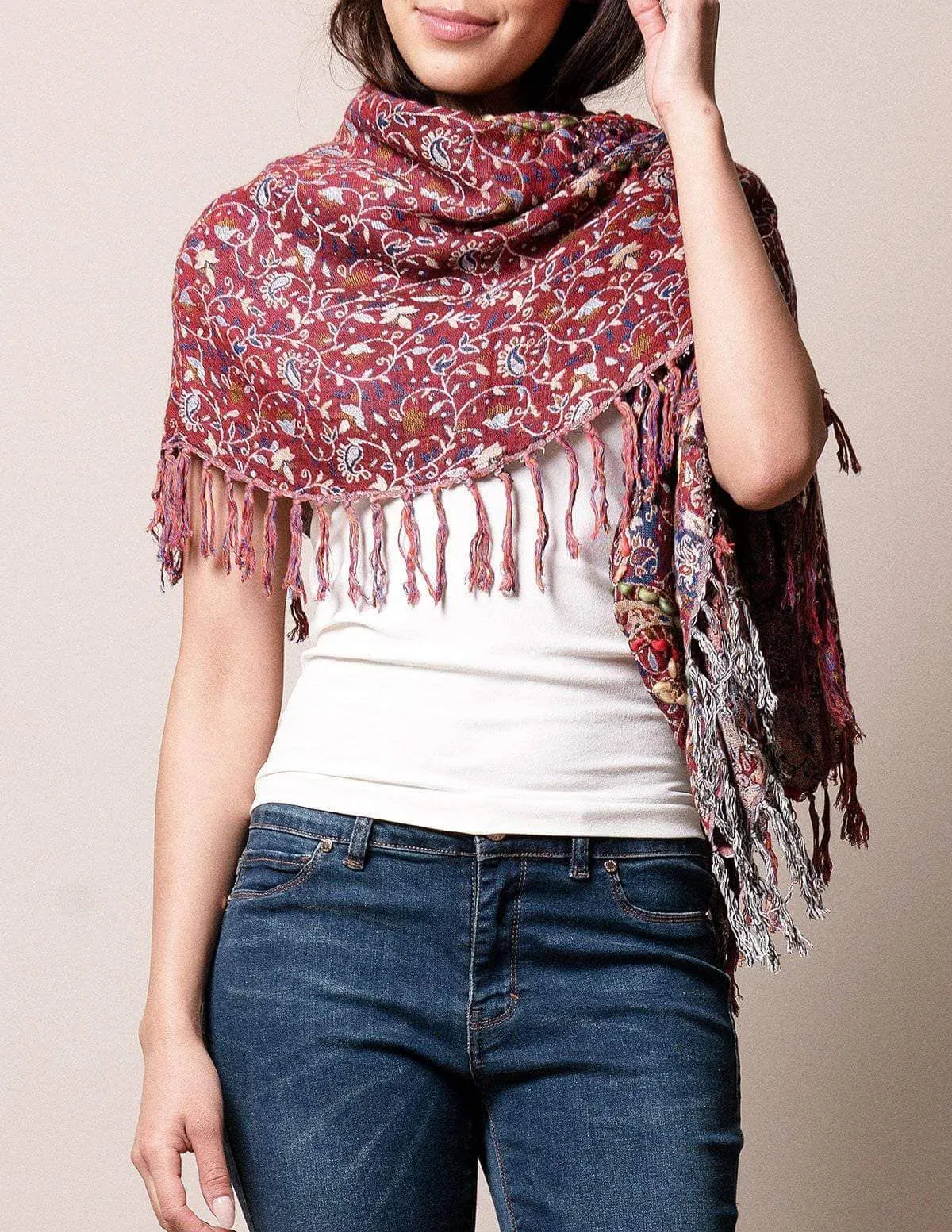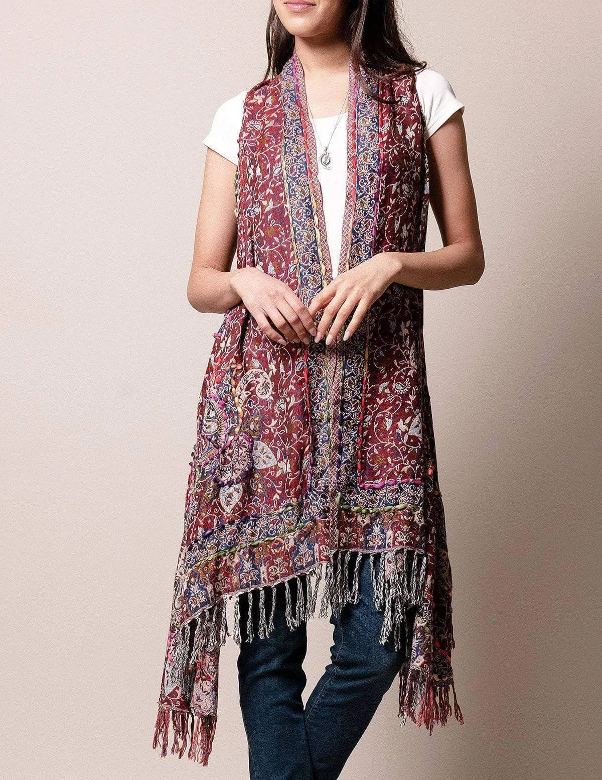 More ways to love your bestselling Jaipur Wrap! 3-in 1 styling gives you lots of new options - wear as a boho vest, a stay-in-place shoulder wrap or a warm and cozy scarf.