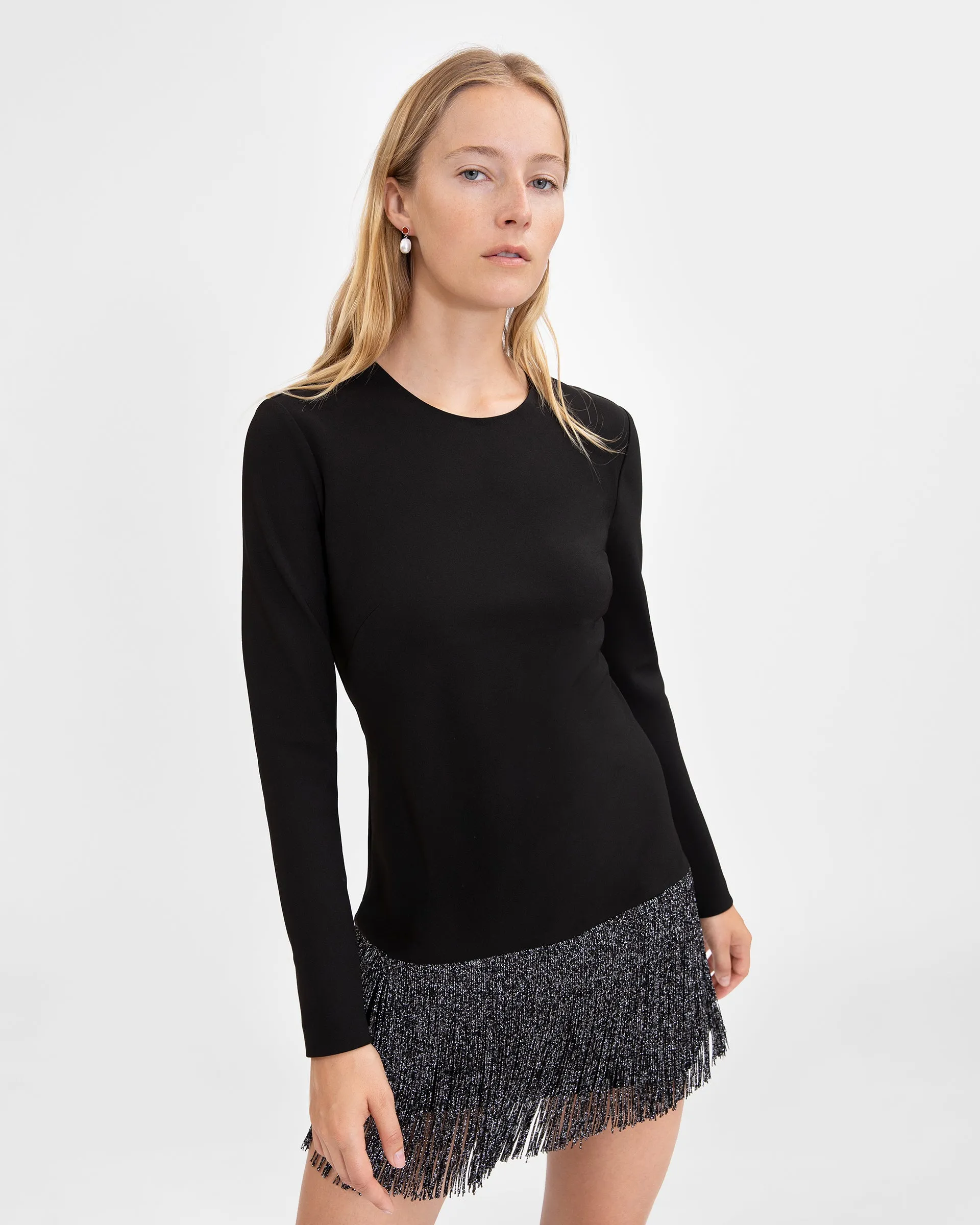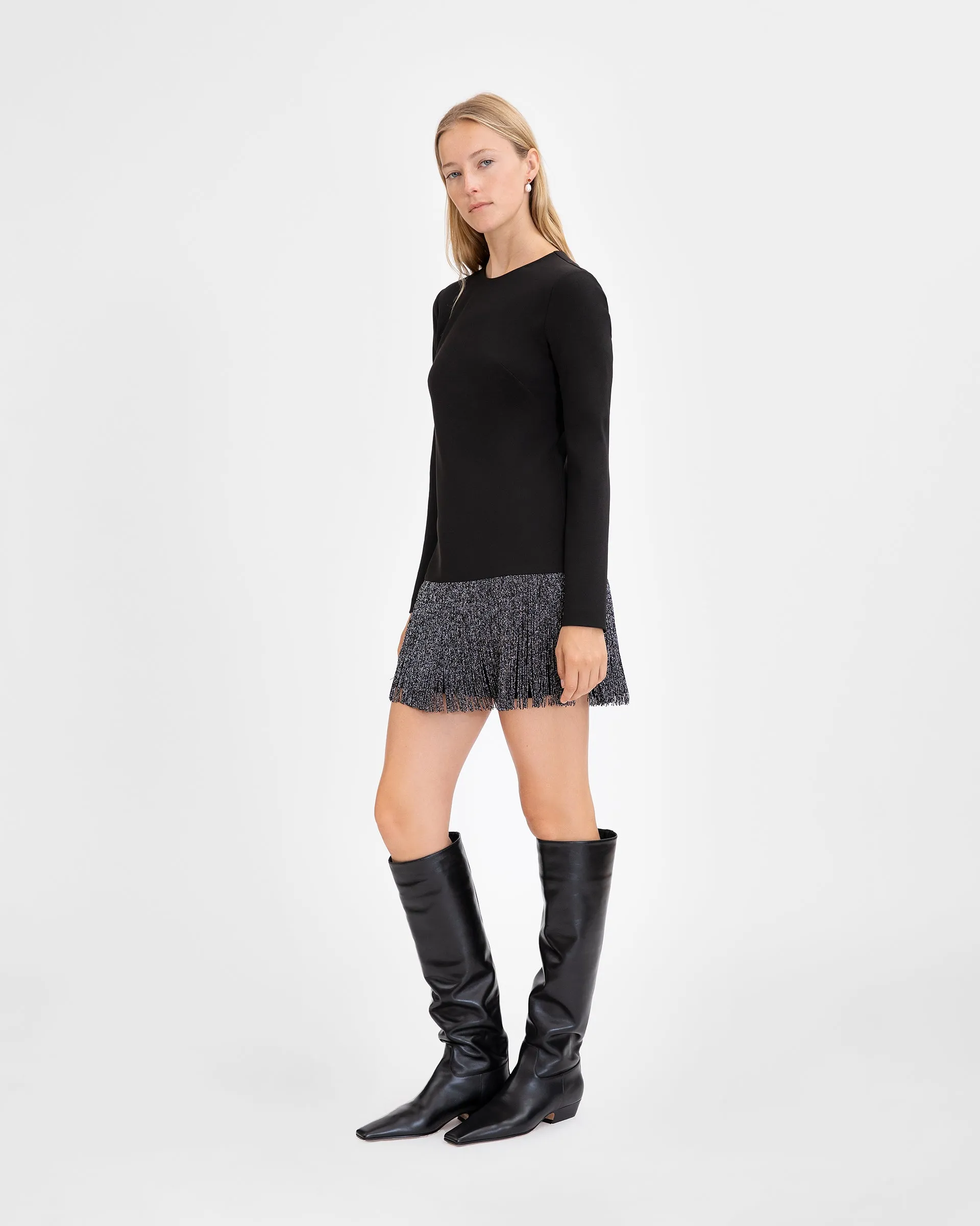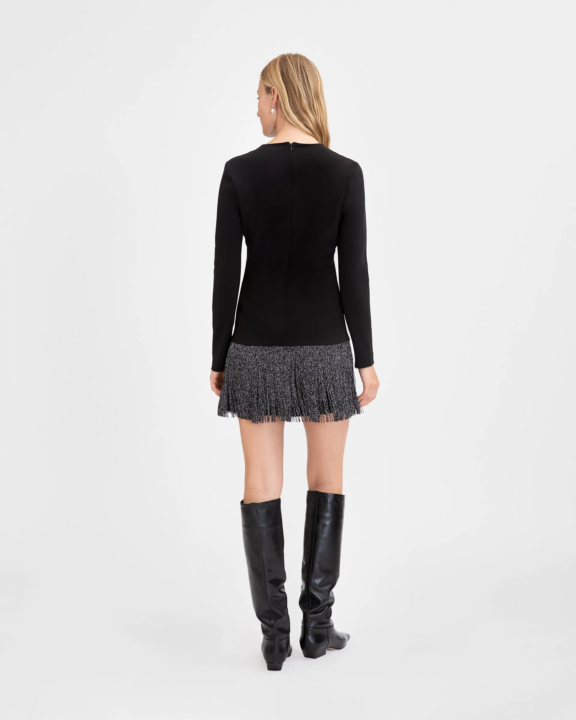 Featuring a short fringe trim with a crepe hem underneath for modest coverage, Agatha is as fun as it is easy with a luxurious look and feel.