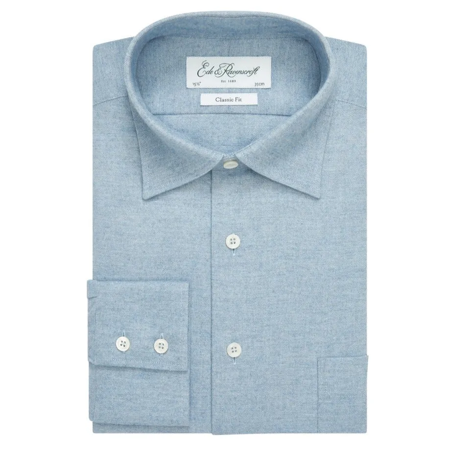 The Aragon shirt is a generous cut offering maximum comfort. It has a softer collar construction with single cuff and a pocket on chest. Offered in a fine melange twill cotton cashmere.