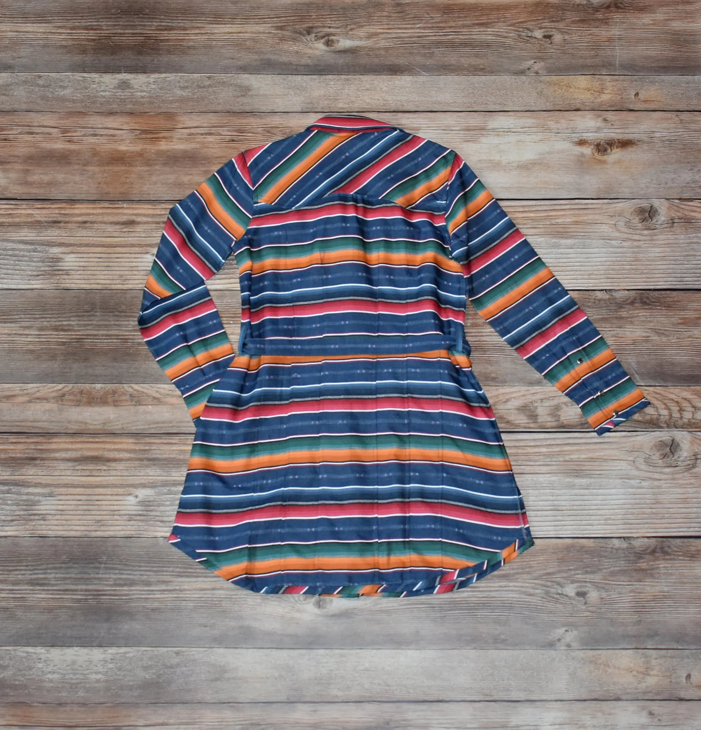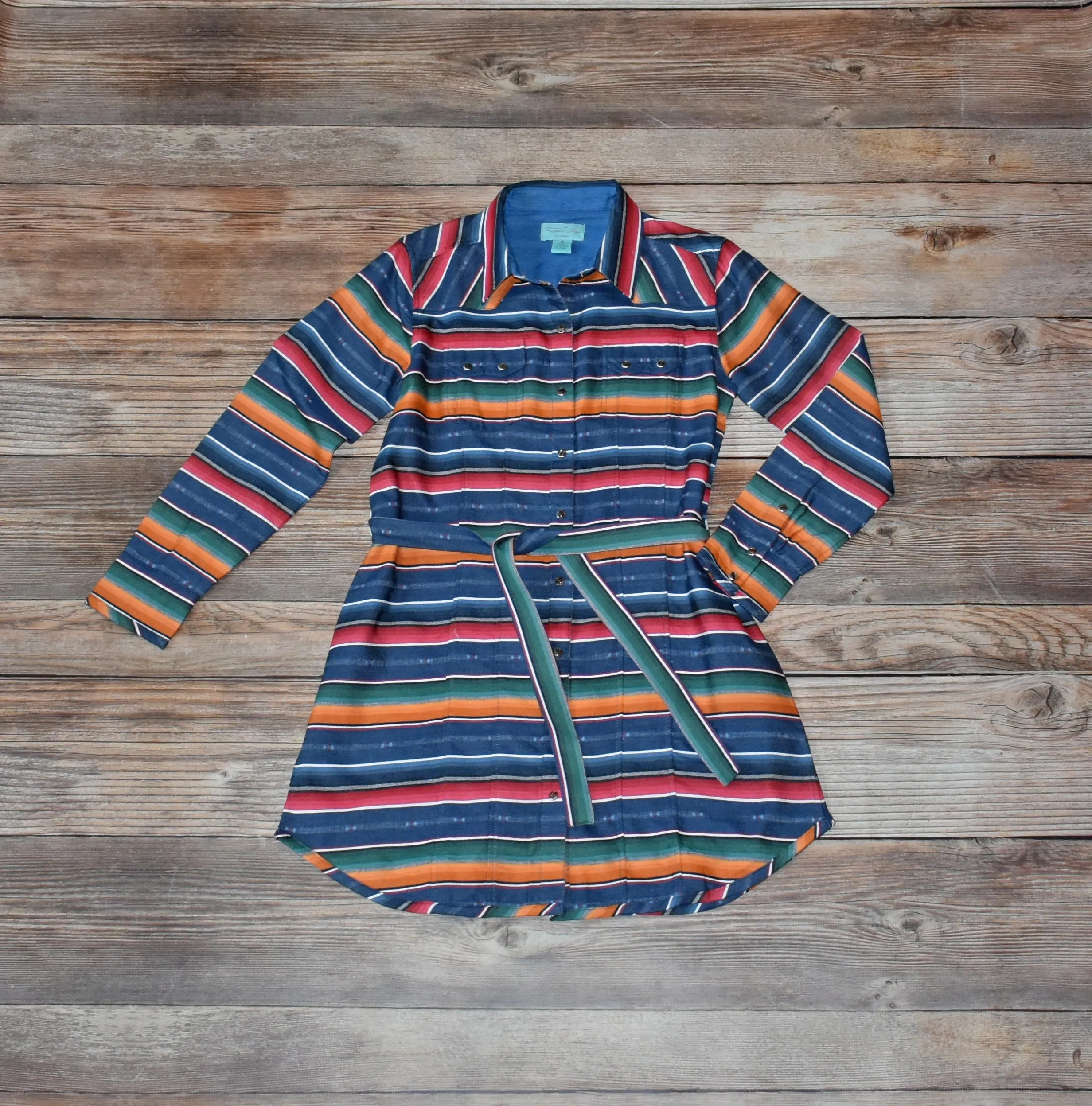 Colt 44 Tunic in Ocean by Tasha Polizzi. This gorgeous serape tunic dress is a classic and timeless western style piece you will enjoy for many years to come. Wear with your favorite cowboy boots and hat to complete the look.