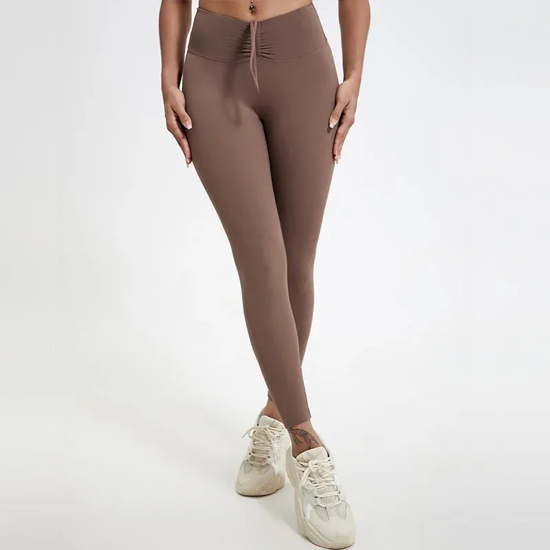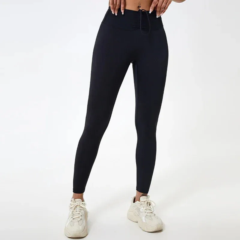 Drawstring High Waist Tights Female Push Up Breathable Train Sports Leggings