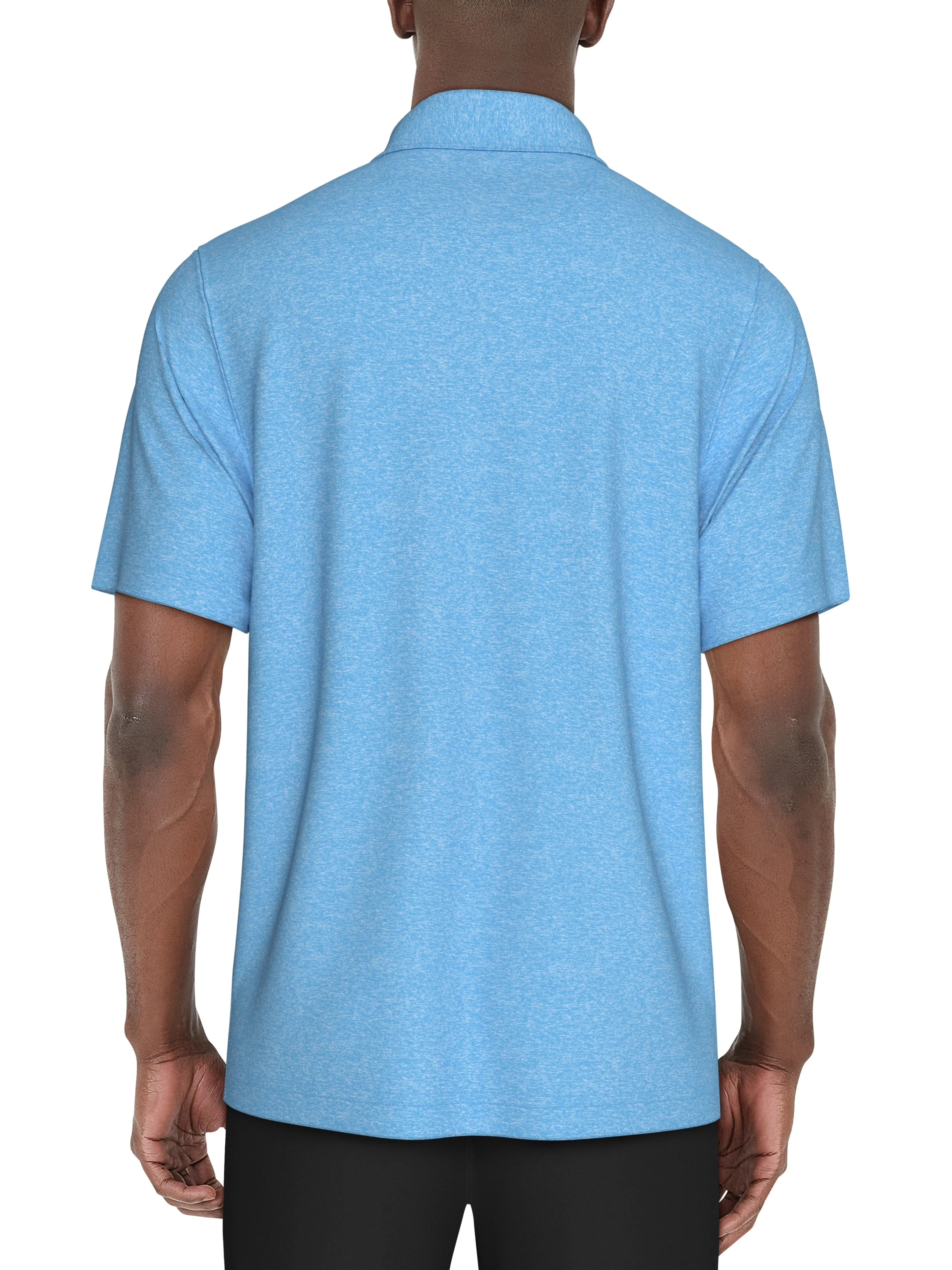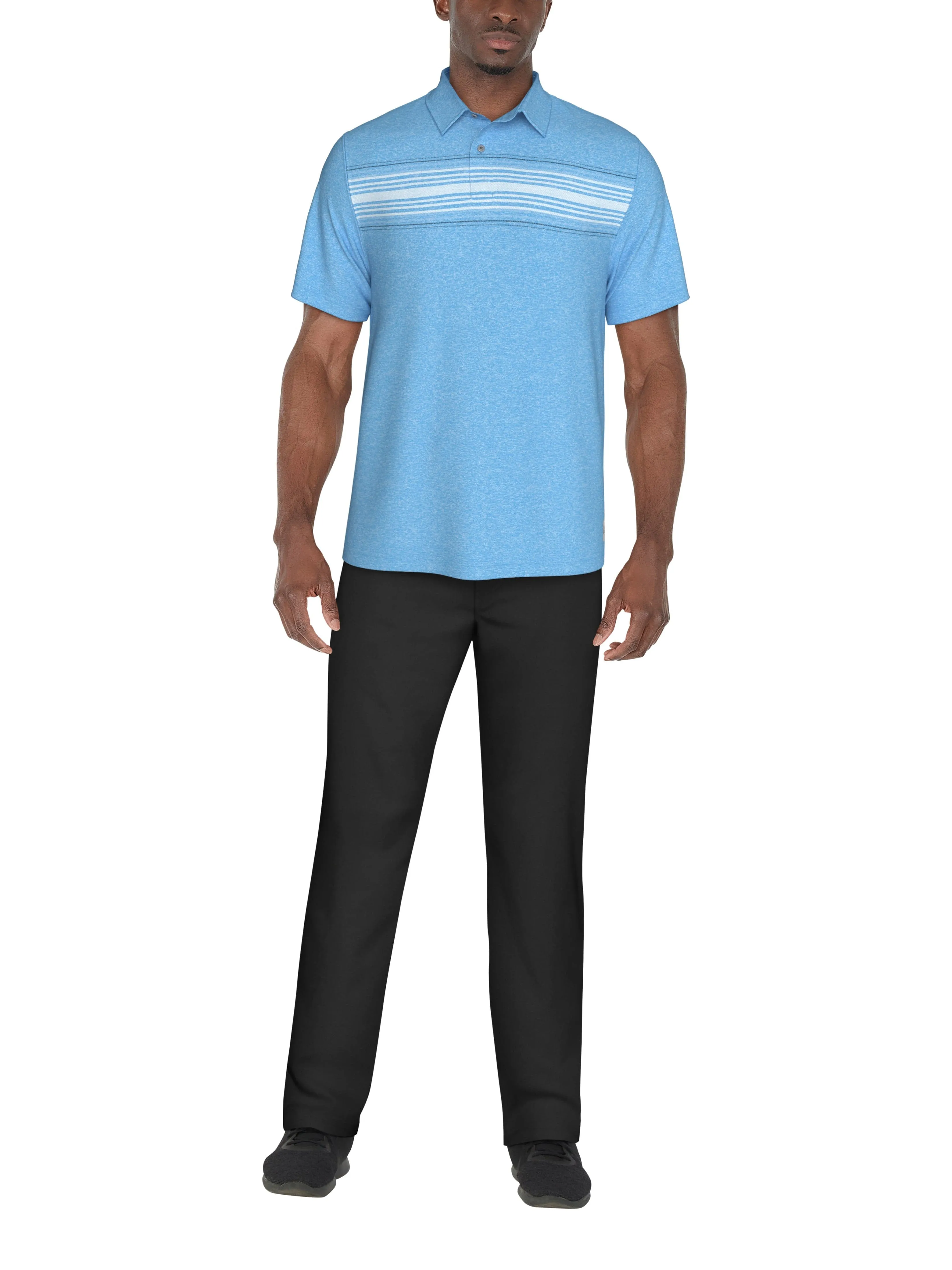 This PGA TOUR Apparel men’s golf top features stripes across the chest for eye-catching contrast. Great for both playing a competitive round at the course and enjoying a patio lunch with the guys afterwards, the men’s golf top features sun protection to help block damaging UV rays. Moisture-wicking technology helps to keep you comfortable and dry, while performance stretch helps the material move with you through each powerful swing. The fabric is made with a soft and lightweight jersey knit that’s easy to wear in any weather conditions and it’s crafted from 30% recycled polyester, making it a great option for eco-conscious golfers.
