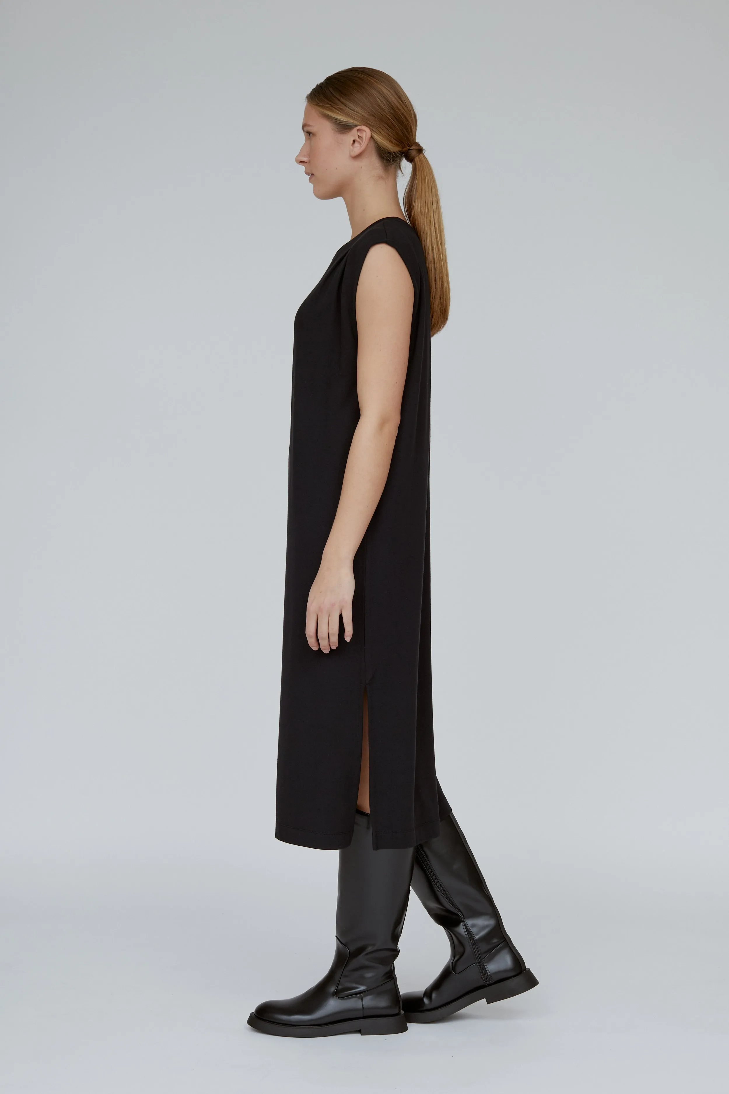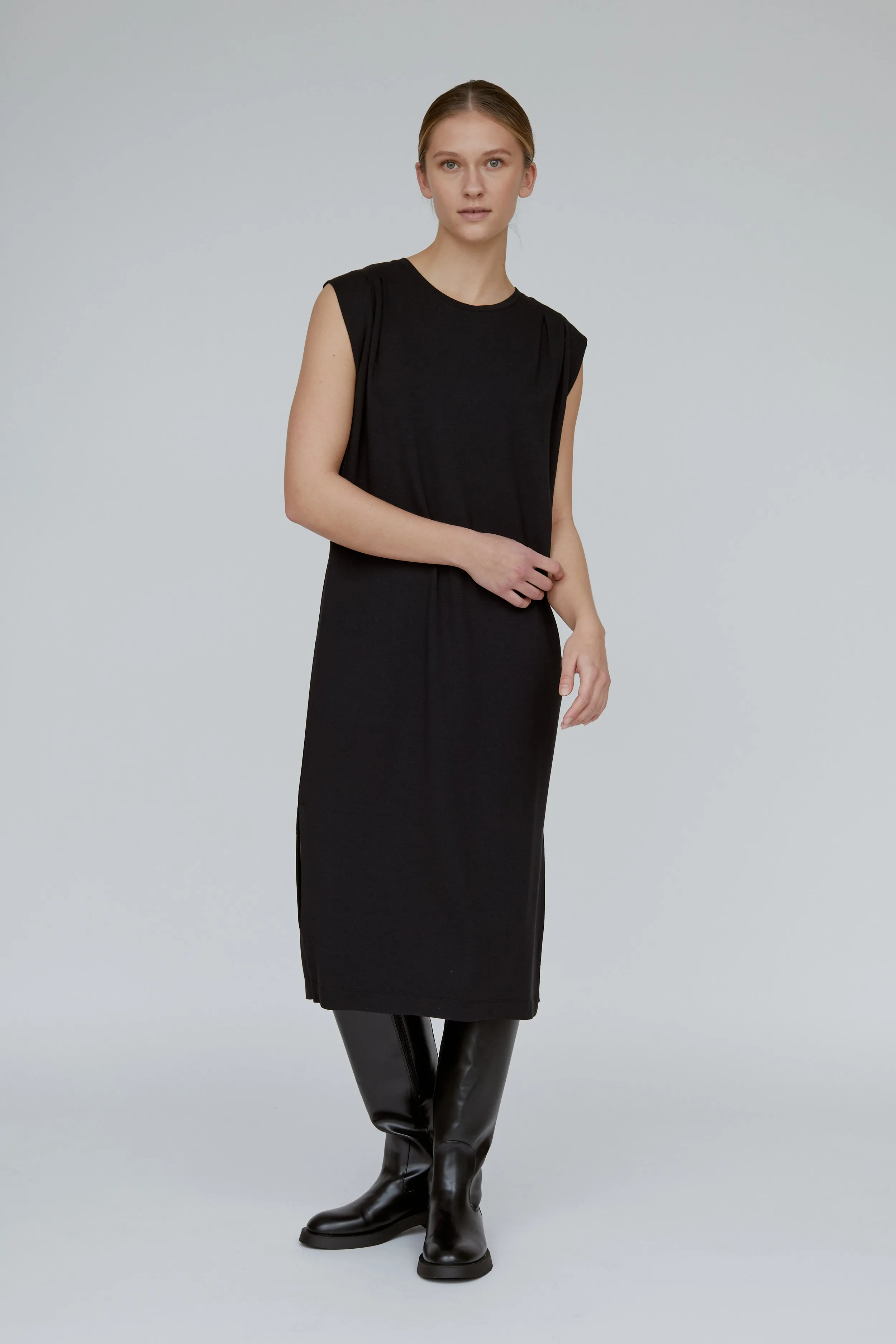 Sunai Dress is our new dress made of 48% certified modal, 48% EcoVero viscose, and 4% elastane. The material is soft and stretchy, with a smooth texture.
