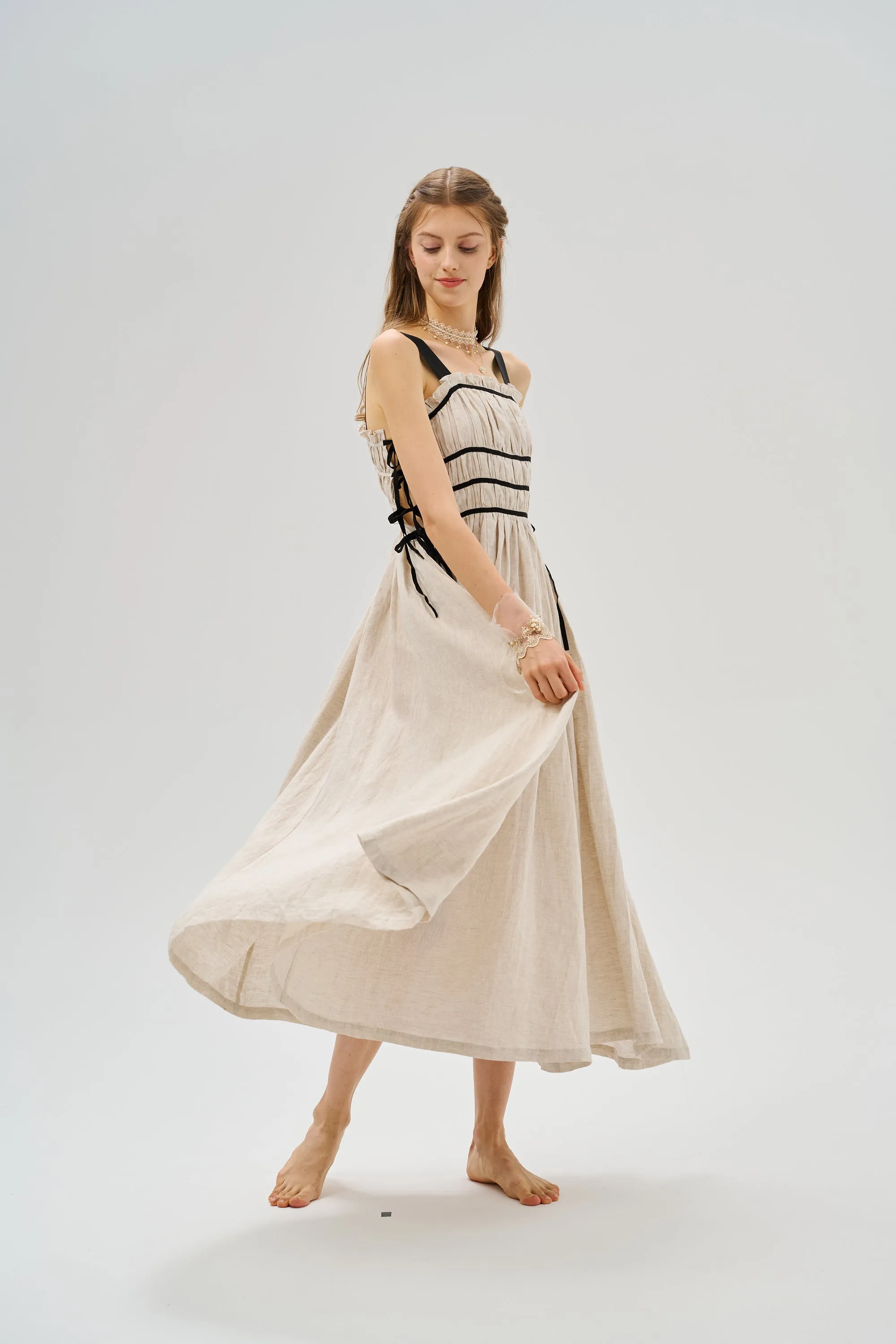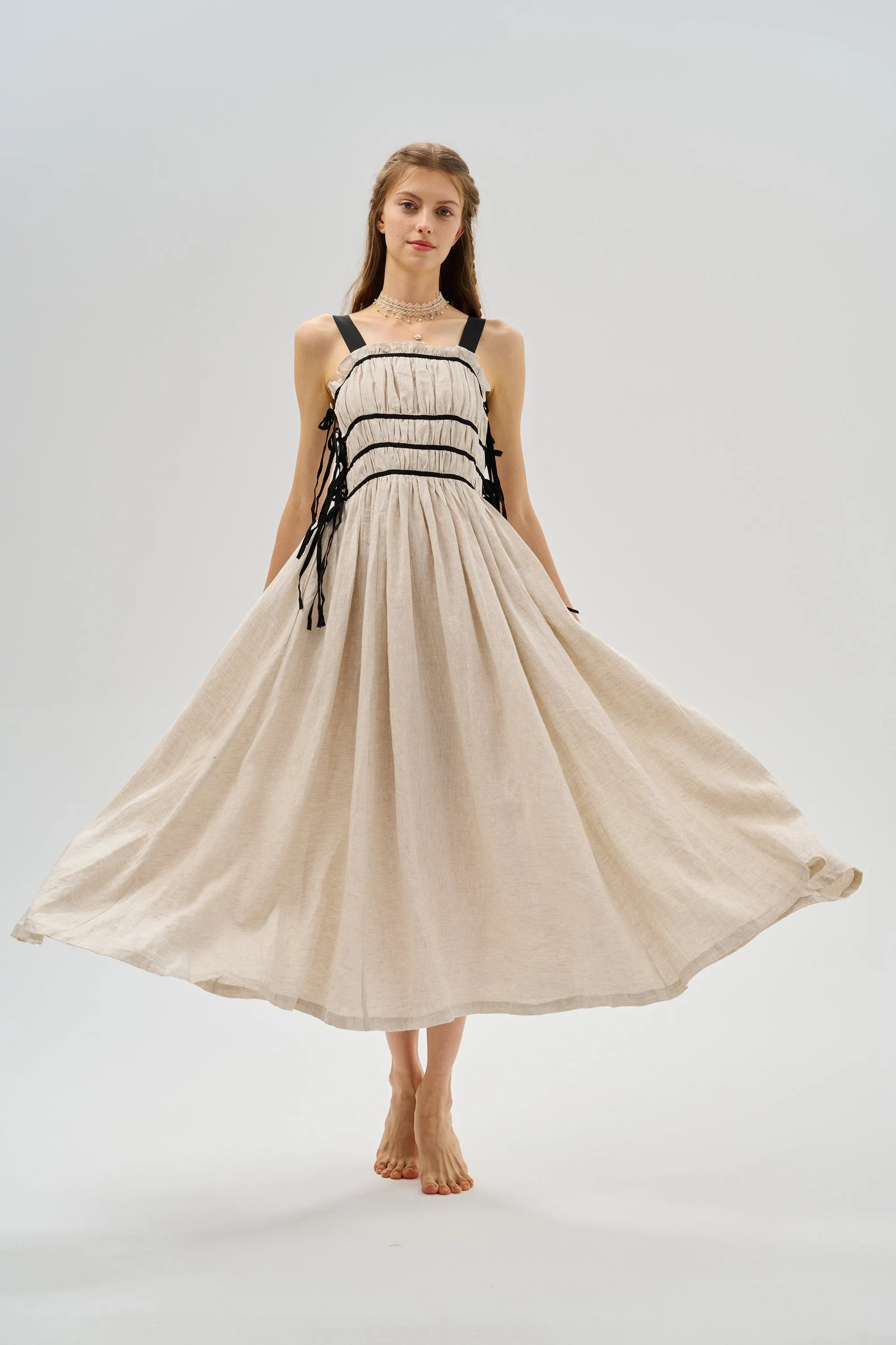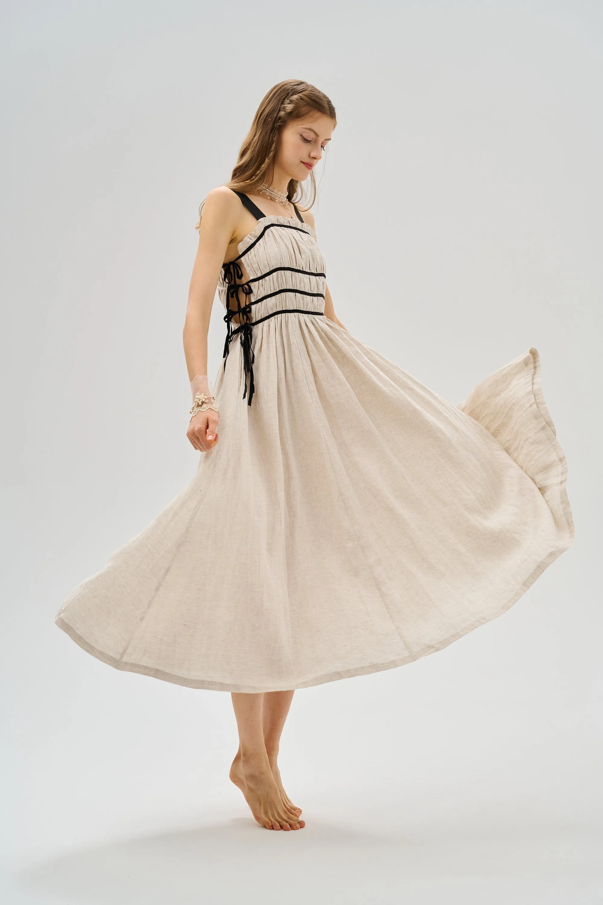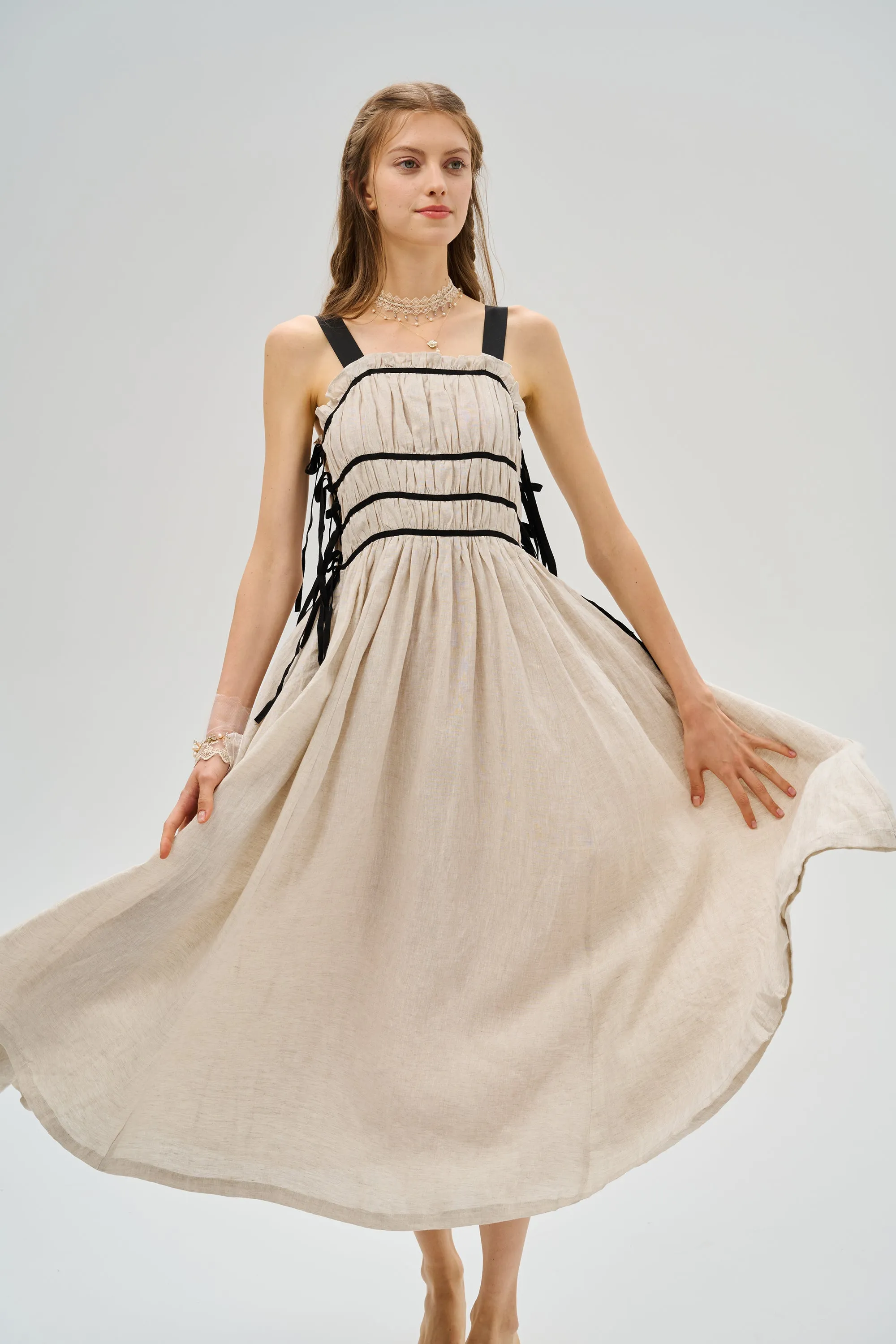 Pastoral yet classy, elegant yet cute, vintage-inspired linen dress will make your vacation wardrobes instantly prettier.
